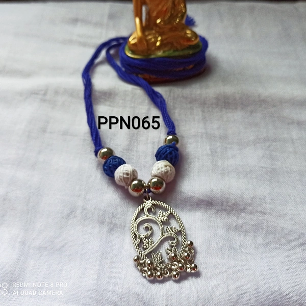 PPN065 DEEP BLUE WITH SILVER COMBINATION FANCY NECKLACE