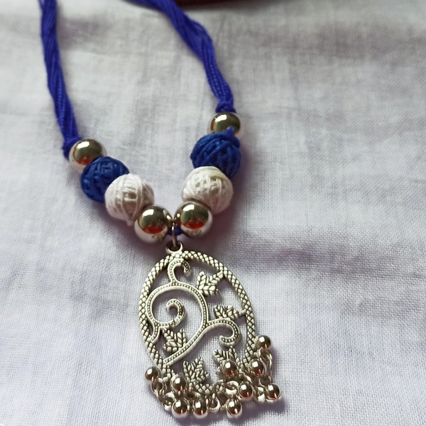 DEEP BLUE WITH SILVER COMBINATION FANCY NECKLACE